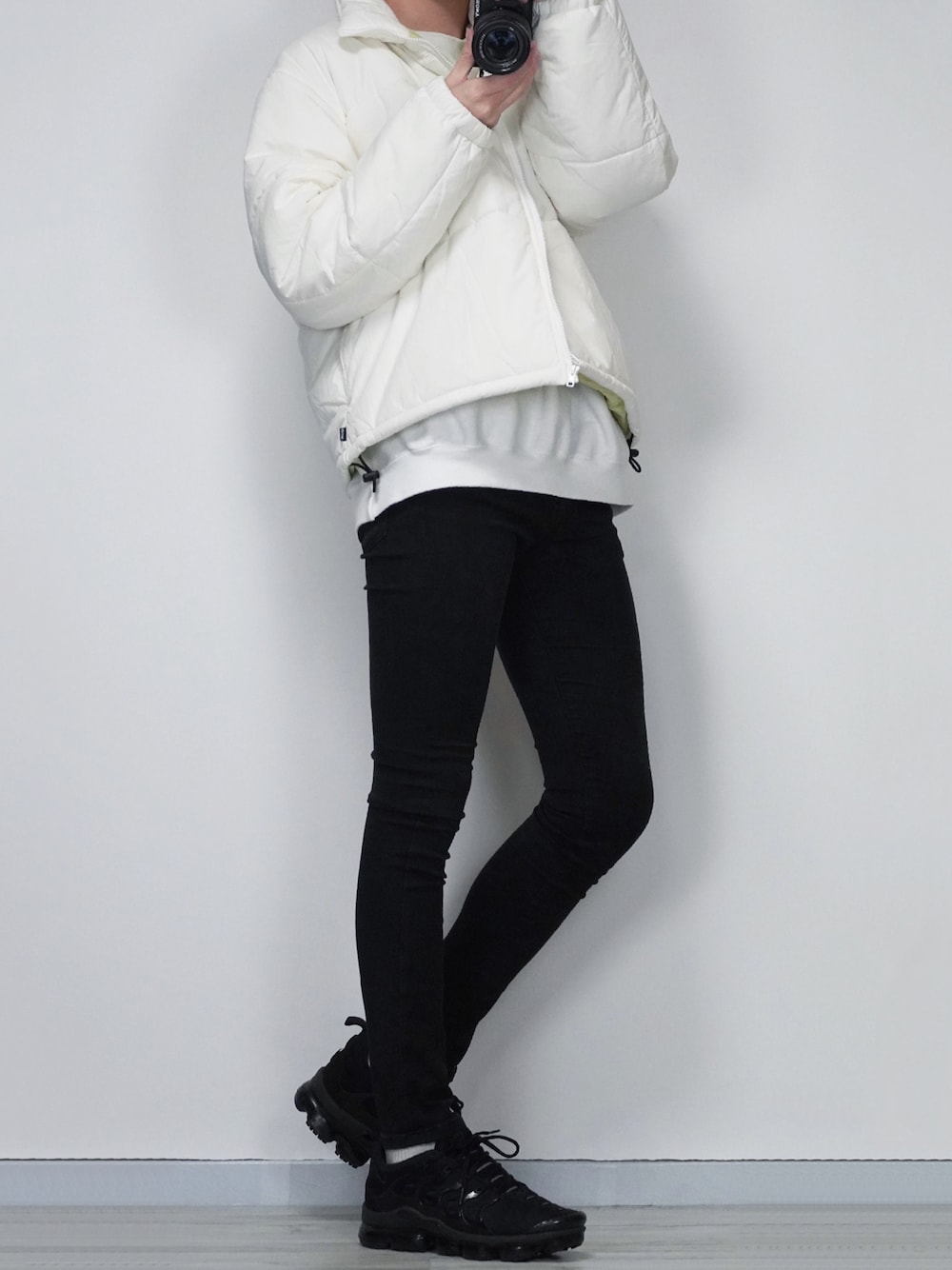 モノトーンコーデ 今日はNot So Apeのパフジャケットを使った冬コーデ✌️ 軽量ながらとても暖かいアウターです🙆♂️ Instagram→@sei_wear