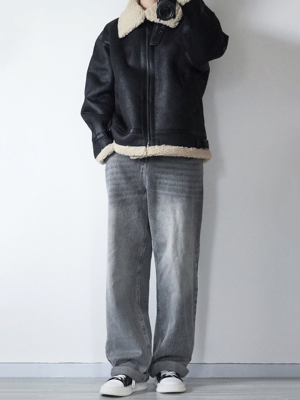 seiのムートンコート「B-3ブルゾン/ボアブルゾン/フェイクムートン/フライトジャケット【直営店限定カラーあり】」を使ったコーディネート