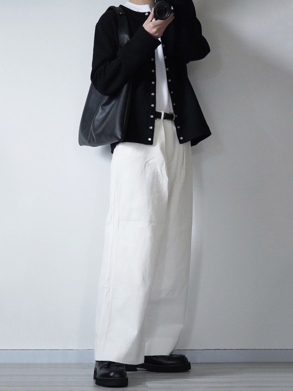 白黒コーデ 今日はagnes b.のカーディガンプレッションを使ったコーデです✌️ 使う色少なめでスッキリさせてみました🙌 Instagram→@sei_wear