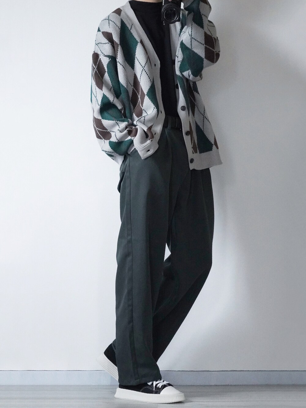 カーディガン×スラックス 今日はアーガイル柄のカーディガンを使ったコーデ✌️ 生地が厚いので一枚羽織るだけで暖かさバッチリです! Instagram→@sei_wear