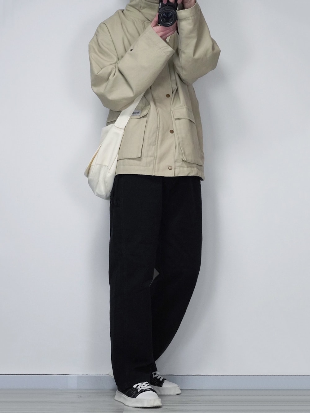 seiのブルゾン「【retock's】ロゴピスネーム 襟コーデュロイ切り替え ビッグシルエット ダック地ブルゾン/裏中綿キルティング」を使ったコーディネート