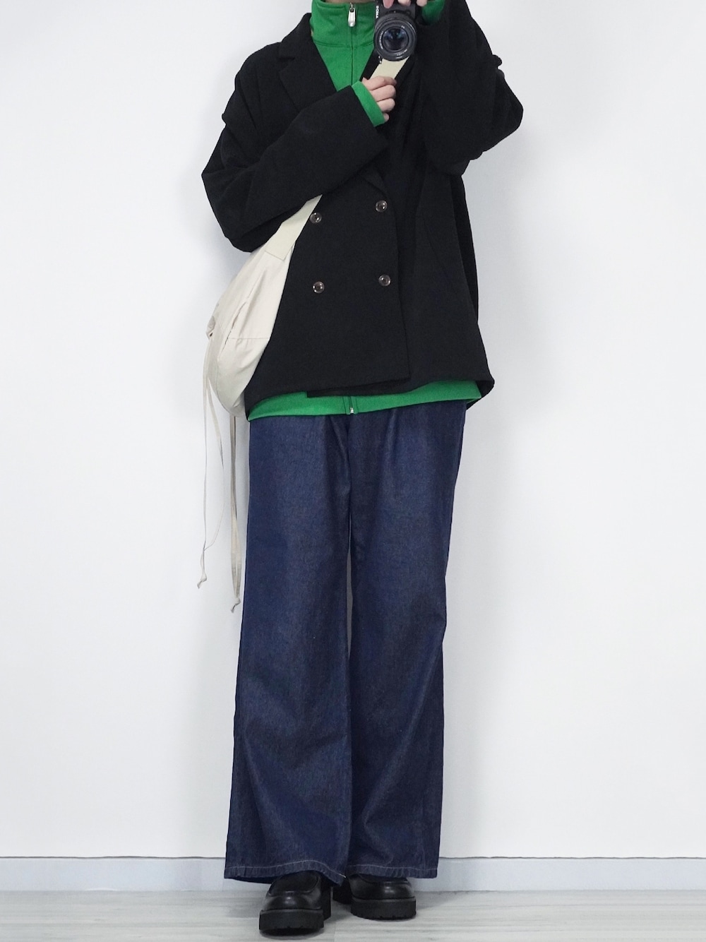 seiのテーラードジャケット「ポリトロビッグシルエットルーズフィットダブルテーラードジャケット」を使ったコーディネート