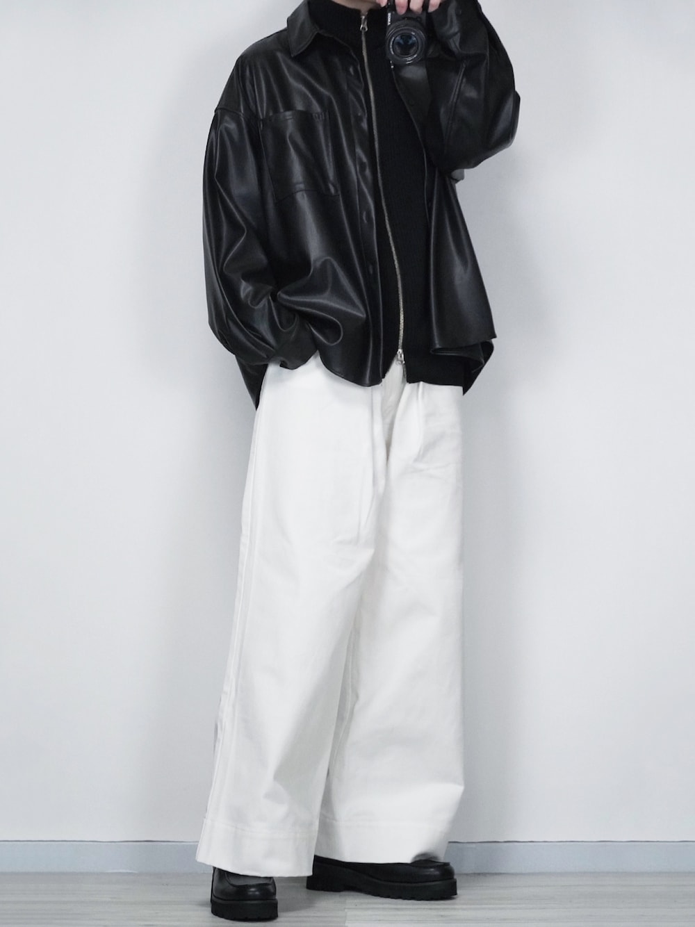 白黒コーデ       レザーを使って大人っぽい雰囲気に✌️       Instagram→@sei_wear