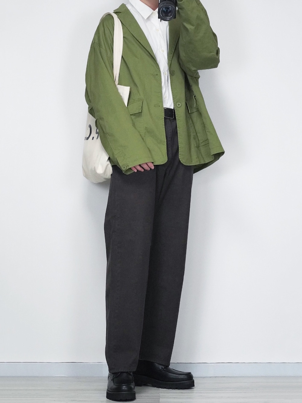 カーキコーデ       今日はカーキのテーラードジャケットとブラウンデニムを合わせてみました✌️       キレイめにもカジュアルにも使える便利なジャケットです!       Instagram→@sei_wear