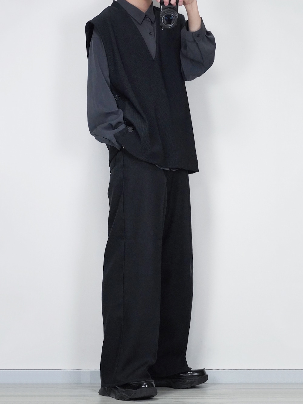 ブラックコーデ シャツとベストの組み合わせがカッコ良すぎます!! Instagram→@sei_wear