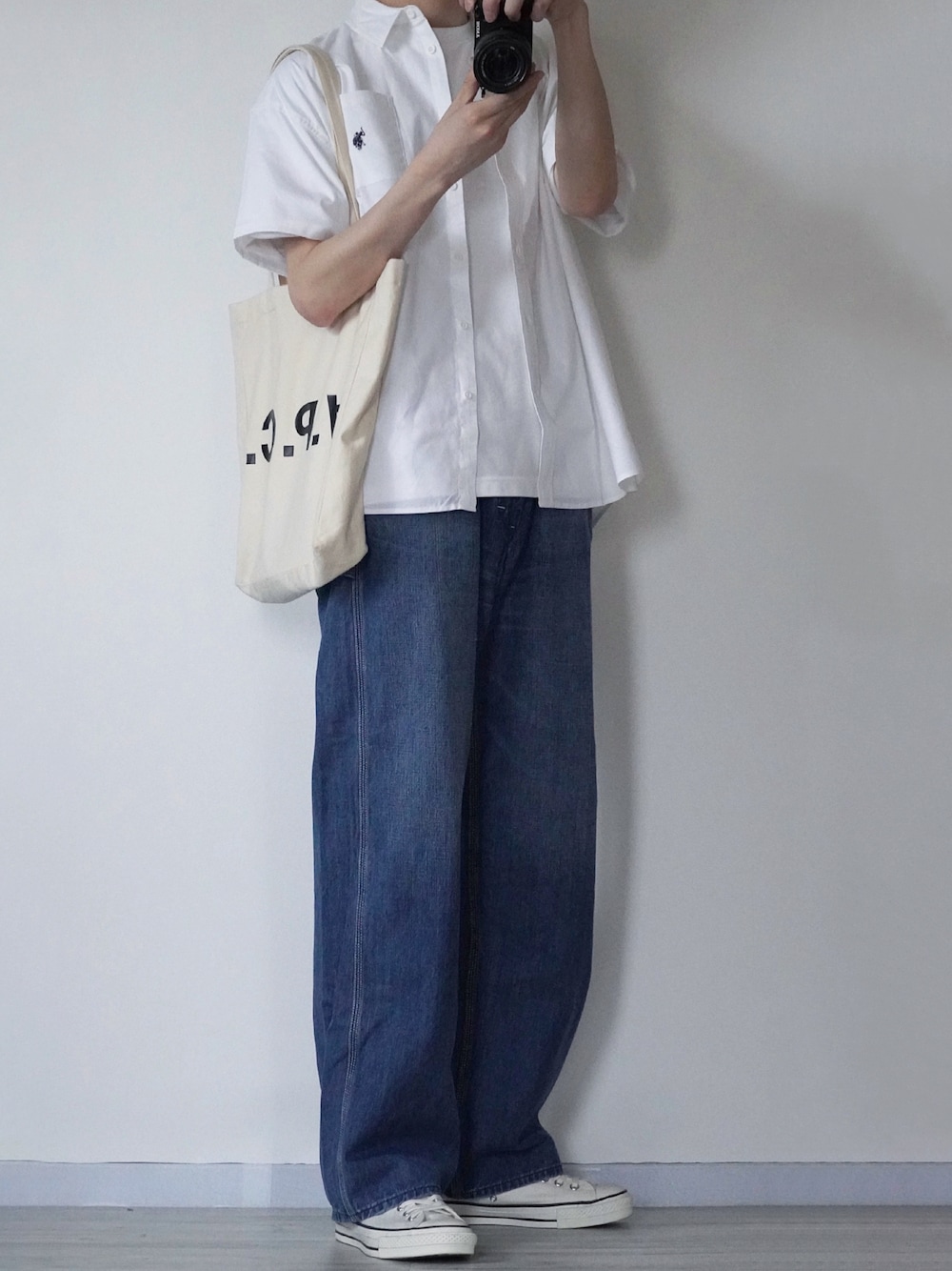 シャツ×デニム       シャツとデニムを合わせた爽やか夏コーデ✌️       ゆるダボデニムおすすめです!       Instagram→@sei_wear
