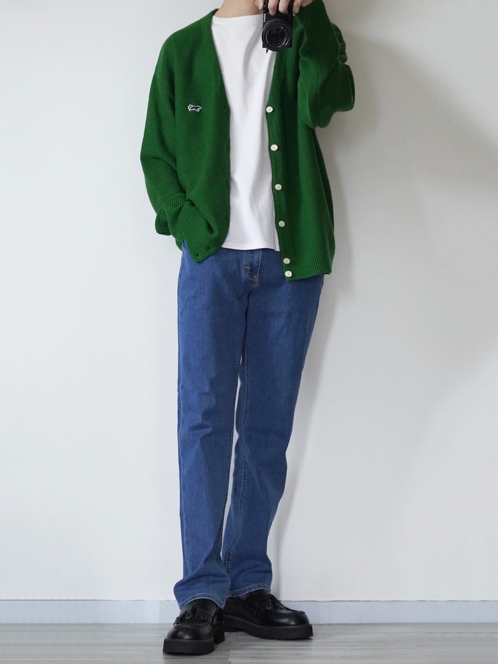 カーディガン×デニム 今日はグリーンのカーディガンを使ってカジュアルに✌️ クール素材を使用したデニムなので夏でもとても涼しく履けます👌 Instagram→@sei_wear