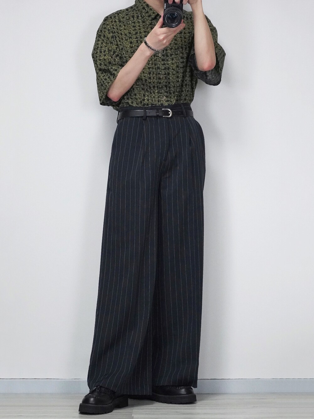 シャツコーデ       今日は柄シャツを使った夏コーデ✌️       ストライプパンツがめちゃくちゃかっこよい👏       Instagram→@sei_wear