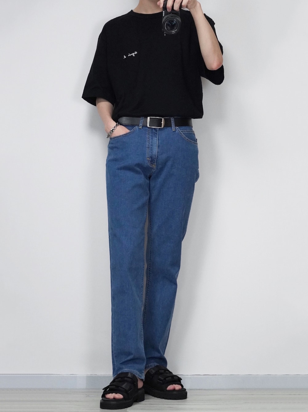 デニムコーデ       今日はシンプルに黒Tとデニムをあわせてみました✌️       Instagram→@sei_wear