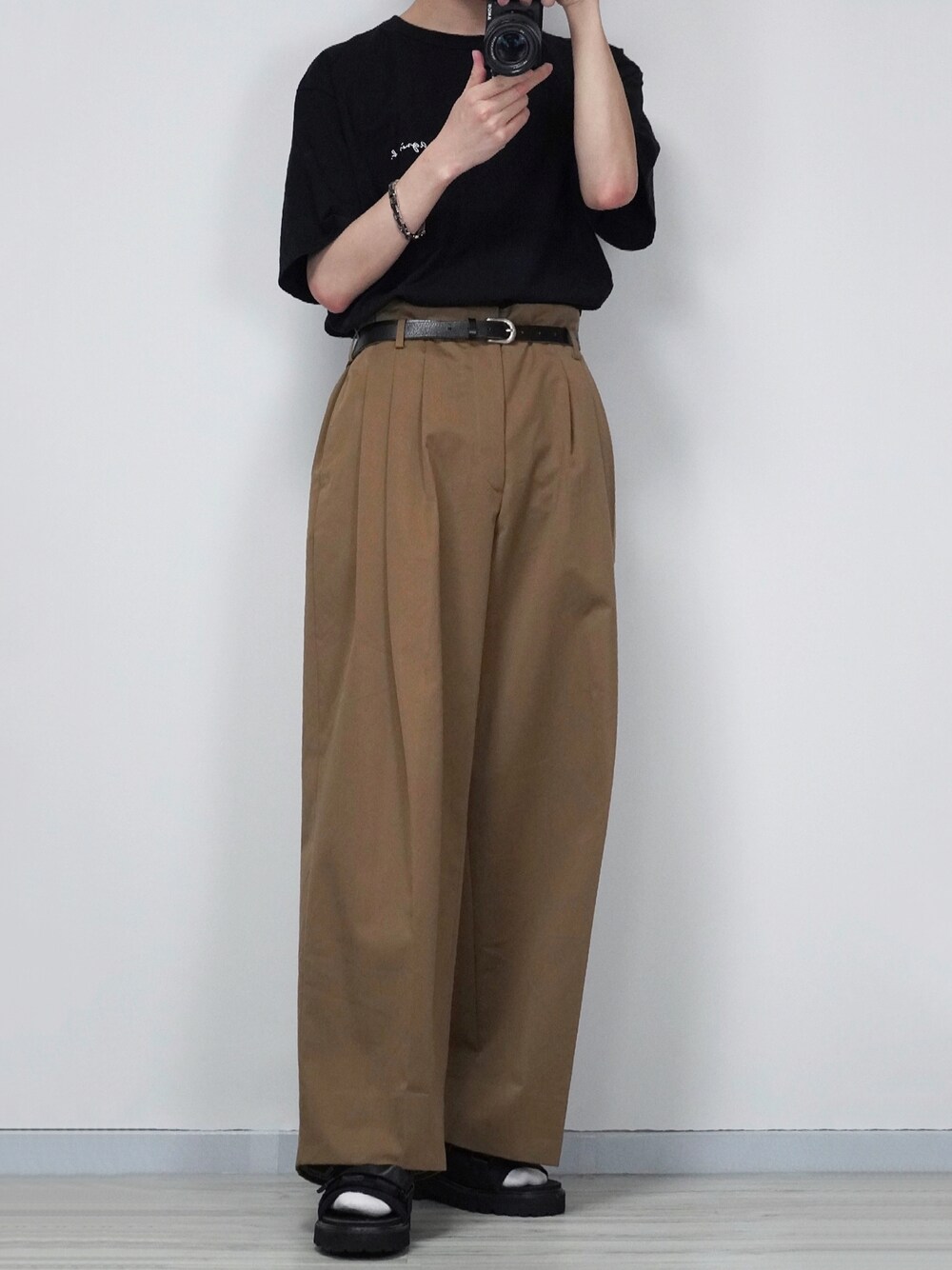 ブラック×ベージュ       黒Tとワイドパンツを合わせた夏コーデ✌️       Instagram→@sei_wear