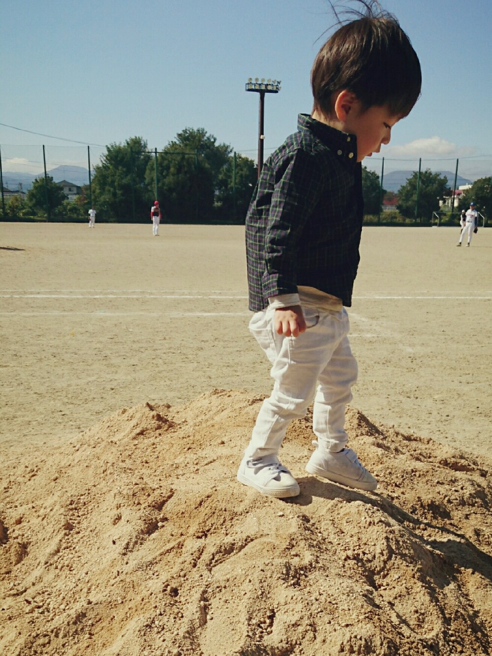 久しぶりに。 大好きチェック。 感謝祭に参加させてください♪♪ 眼鏡も帽子も拒否。 パパの野球応援♪ 試合だと思ったら 練習試合、、、