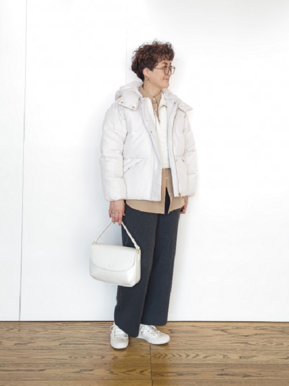 ご覧いただき有難うございます🫧 Techichiならファミリー店のマスキです👓 ………………………………………………………… 中綿ショートコートのカジュアルコーデです🤍 アウターはとても軽く1枚であれば防寒に⭕️ INが薄手でも温かいですよ!! フードも取り外せるので定番の1枚でお勧めです✨✨ トレンドのハーフジップがベストで展開しています🎵着れる期間も長いですし、脚長効果がありますよ🤭異素材合わせが⭕️ ニットパンツはストレートラインなのでスッキリ見せてくれます!!総ゴムなのでストレスフリーで着て頂けます☝️ ………………………………………………………… ⚫WEAR ✢ますき【@sei1225】 ✢Momoko【@pescadimomo】 是非フォローを宜しくお願い致します✨