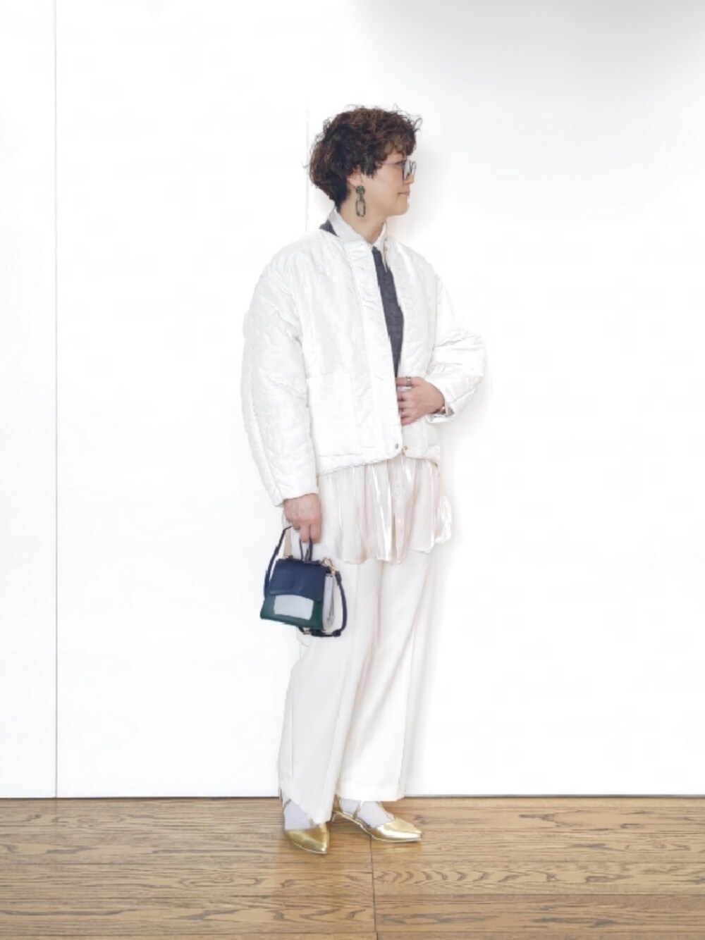 ご覧いただき有難うございます🫧 Techichiならファミリー店のマスキです👓 ………………………………………………………… キルティングブルゾンのキレイ目コーデです🤍🖤 パターンキルティングのブルゾンはとても軽く後ろ下がりのシルエットも素敵です🥰 バランスが取りやすい丈間なのも嬉しいですね✨ サテンシャツは透け感もあり長い期間活躍してます‼️今の時期は重ね着を楽しんで欲しいです🤭 スヌードは薄手なのでアウターINしてもモコモコしません☝️脚長効果もあるので1点あると便利です👓️ ………………………………………………………… ⚫WEAR ✢ますき【@sei1225】 ✢Momoko【@pescadimomo】 是非フォローを宜しくお願い致します✨