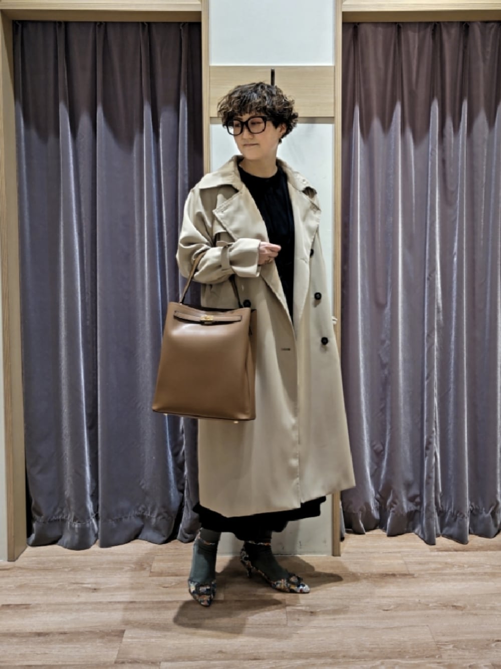 ご覧いただき有難うございます🫧 Techichiエビスタ西宮店のマスキです👓 ………………………………………………………… トレンチコートのキレイ目コーデです🤗 トレンチコートはポリエステル素材でシワになりにくく、軽いのでとても着やすいです✨ 釦のカラーもポイントですね🖤定番ラインでなので飽きずに使えますよ👌 ワンピースはウエストを絞っているので脚長効果あり🤩 袖口に絞りもあるので袖も上げやすいです☝️光沢感のある素材なのも嬉しいですね🤭 花柄パンプスはヒールが高すぎないのでソックス合わせでも⭕️色んな色目が入っているのでシンプルコーデにプラスしたいですね🥰 ………………………………………………………… ⚫WEAR ✢ますき【@sei1225】 是非フォローを宜しくお願い致します✨