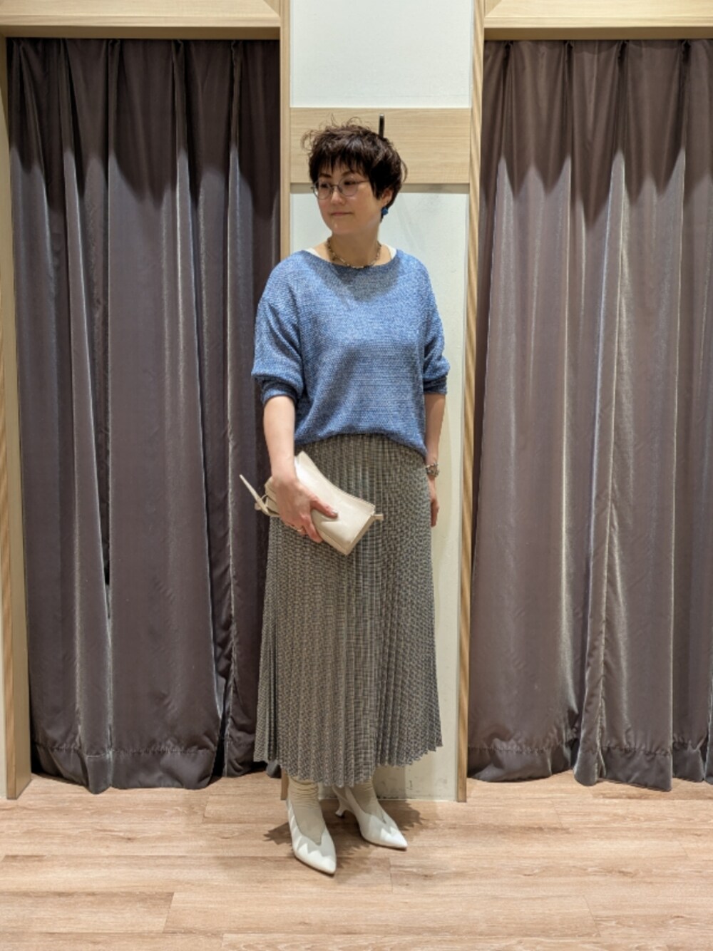 ご覧いただき有難うございます🫧 Techichiエビスタ西宮店のマスキです👓 ………………………………………………………… ボートネックニットのカジュアルコーデです💐 夏まで使えるニットは編み目に透け感がありノースリーブ合わせがお勧めです☝️肌当たりもサラッとしているのでジメジメした日にもお勧めですよ🎶裾も絞れるのでボトムも選ばないですね!! プリーツスカートは毎回人気の選べる着丈シリーズ✨今回は柄2色•無地3色の展開で、広がり過ぎないプリーツなのでスッキリしてくれます😍 ………………………………………………………… ⚫WEAR ✢ますき【@sei1225】 ✢hina【@hiip17】 是非フォローを宜しくお願い致します✨
