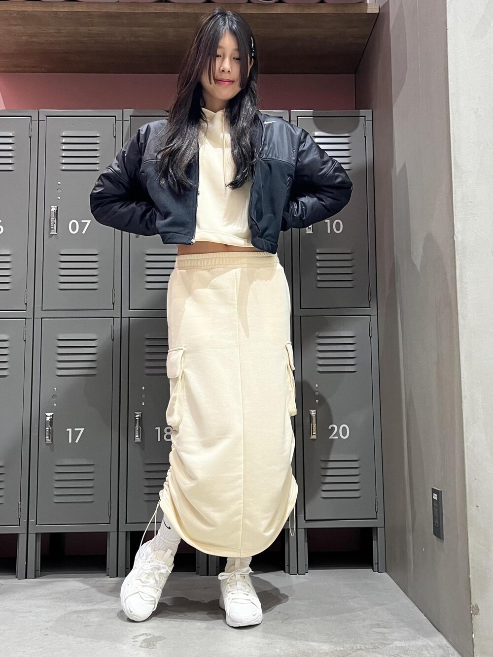 今回は新作のカーゴスカートを使ってコーデを組んでみました。 暗めの服を着たくなる冬ですが、あえて明るい色の黄色味のあるベージュを選んでみました!カーゴの形ですが、パステルなカラーなので女の子らしいかわいい印象になります。 そこに、あえて強めなNIKEのフリースを合わせてみました。ゴールドのラインががとっても可愛く、キラキラ輝きます.*・゚ .゚・*. 足元はハラチの白にして重い印象にならないようにしてみました!! 皆さん是非チェックしてみてください! ----- 商品のお問い合わせなど、是非お気軽にメッセージくださいませ! お得な情報も配信中! LINEでアーバンドックららぽーと豊洲店スタッフに相談は【友達追加】をタップして下さい https://lin.ee/7uefMp6