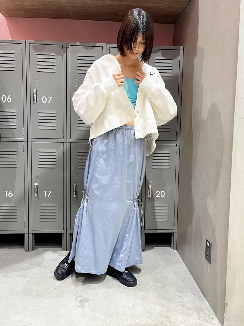 今回は新作のリバーシブルのブラを着てみました! このブラは水滴の柄と無地のカラーのリバーシブルになっていて気分によって変えられるので着回し力の高いものとなっています!!1個で2つ手に入った気持ちになっていいですね♪♪ 肌触りも良く着心地がいいです。 アウターはNIKEのカーディガン合わせました。 オーバーサイズのシルエットがスカート素敵です 商品のお問い合わせなど、是非お気軽にメッセージくださいませ! お得な情報も配信中! LINEでアーバンドックららぽーと豊洲店スタッフに相談は【友達追加】をタップして下さい <a href=" https://lin.ee/7uefMp6" style="background:url(https://scdn.line-apps.com/n/line_add_friends/btn/ja.png); background-size: contain; display: block;width: 116px;height: 36px; margin:.5em 0;"></a>