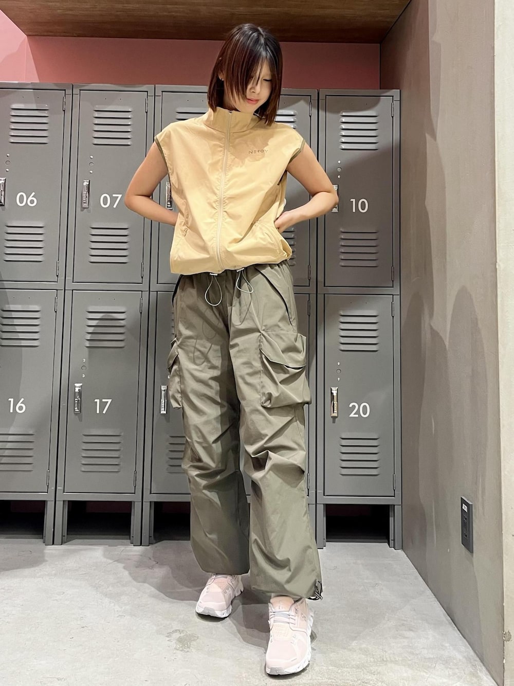 今回は新作のトップスを使ってコーデを組みました。 こちらはボレロ、タンクトップのセットで着回し力抜群のトップスです!今回はスポーティーにタンクトップのみで着てみました。 裾に絞りがついているので長さの調整もできるのがポイント! パンツはカーゴパンツにして同系色でまとめました! 足元にはPINKのonのシューズ! カーキとPINKの合わせがとても可愛いです! onのシューズはソールが薄めですが、もちもちしていて歩きやすいのが特徴です! 是非ゲットしてみてください!!! LINEで豊洲店スタッフに相談は【友達だち追加】をタップをして下さい <a href=" https://lin.ee/7uefMp6"style="background:url(https://scdn.line-apps.com/n/line_add_friends/btn/ja.png); background-size: contain; display: block;width: 116px;height: 36px; margin:.5em 0;"></a><br />