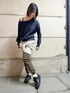 今回は新作のストレッチパンツを使ってコーデを組みました! トップスはSPIRITUAL GANGSTERのワンショル、オフショルになるトレーナー 薄目のブラックカラーがビンテージ感ある雰囲気がでてかわいいです! そこに新作のストレッチパンツのブラウンを合わせました! 足先にかけて細くなっている形が足が綺麗に見えます! シャカっとした生地ですがストレッチがきいているので履きやすいです! 普通に着るだけでも可愛いですが、ポイントとしてラメのニットフーディーをレイヤードしてみました! 2種類のラメがある生地が可愛いです! LINEで豊洲店スタッフに相談は【友達だち追加】をタップをして下さい <a href=" https://lin.ee/7uefMp6"style="background:url(https://scdn.line-apps.com/n/line_add_friends/btn/ja.png); background-size: contain; display: block;width: 116px;height: 36px; margin:.5em 0;"></a><br />