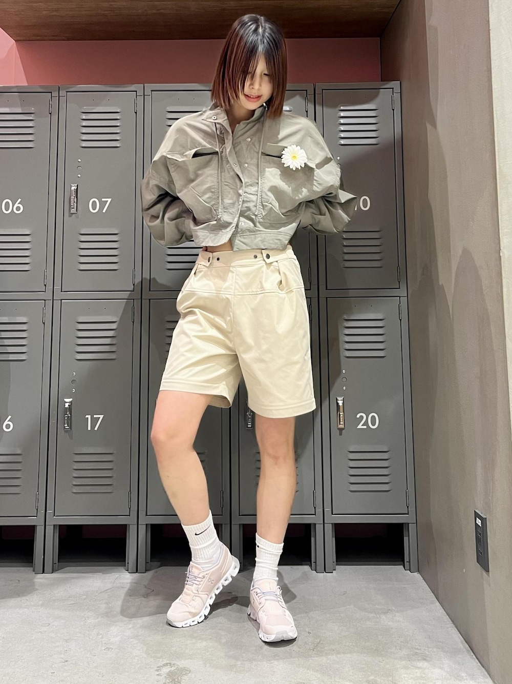 今回は新作の2wayパンツをハーフパンツにして履いてみました! トップスはベージュのパンツにあうようにカーキのミリタリーなジャケットです。 短丈でポッケが多くついているデザインが可愛いです! (njl44010) そこにハーフパンツを合わせて、足元にカラーをいれてカジュアルなコーデにしてみました! LINEで豊洲店スタッフに相談は【友達だち追加】をタップをして下さい <a href=" https://lin.ee/7uefMp6"style="background:url(https://scdn.line-apps.com/n/line_add_friends/btn/ja.png); background-size: contain; display: block;width: 116px;height: 36px; margin:.5em 0;"></a><br />