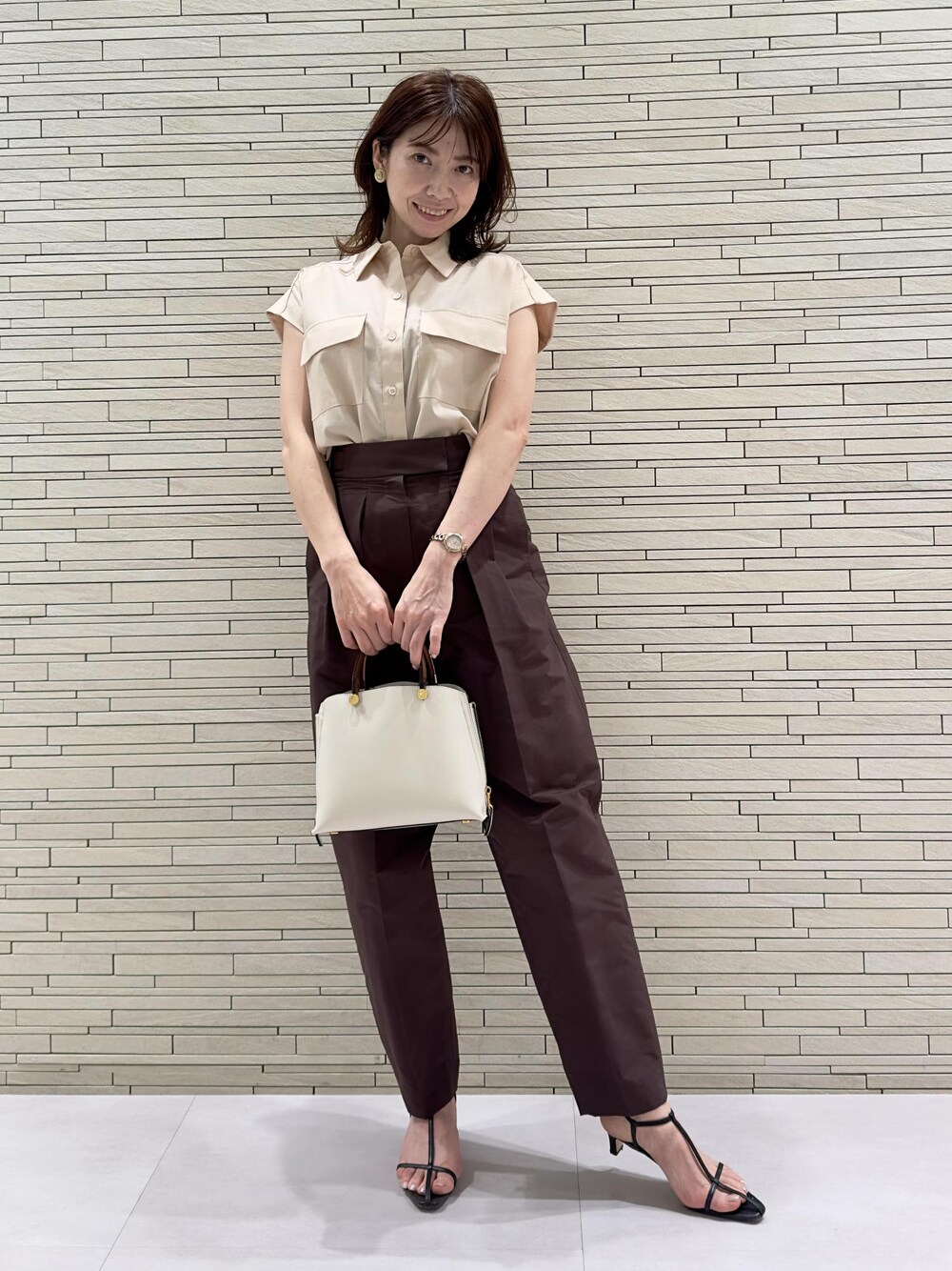 じめじめとした梅雨時期にもオススメの通勤スタイルです♪ 張りのある素材が肌離れも良く、楽ちんに着られるサイズ感が暑い日でもストレスフリーで着ていただけます。 パンツはハイウエストなので脚長効果もあり、スタイルアップ見えしてくれます。 ブラウスは同素材でスカート(GGC23270)もあるので、セットアップで着ていただいても可愛いのでオススメです。 ※店頭及び屋外での撮影画像は、光の当たり具合で色味が異なって見える場合がございます。 商品の色味はスタジオ撮影の画像をご参照ください。 ✨LINE接客承っております✨ 商品相談で店舗に電話するお時間がない方や、この時期なかなか外に出られない方など。。。 お取り置きやお取り寄せ、店舗来店不要の代引き配送などもお伺い出来ます!是非、お気軽にメッセージお送りくださいませ♪ LINEで池袋東武ロペスタッフに相談は【友だち追加】をタップをして下さい <a href="https://lin.ee/T6zg546" style="background:url(https://scdn.line-apps.com/n/line_add_friends/btn/ja.png); background-size: contain; display: block;width: 116px;height: 36px; margin:.5em 0;"></a