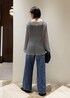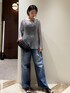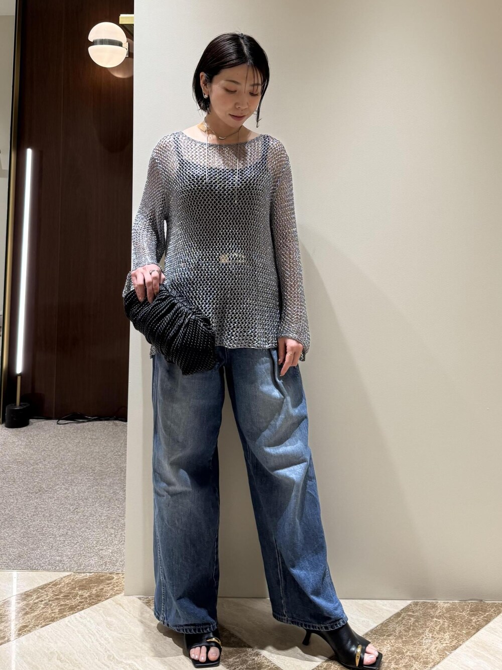 金属を思わせるようなメッシュニットをポイントにデニムコーディネートにしてみました! 程よい透け感があるので、キャミソールワンピース等インナーとのレイヤードスタイルも楽しめちゃいます。