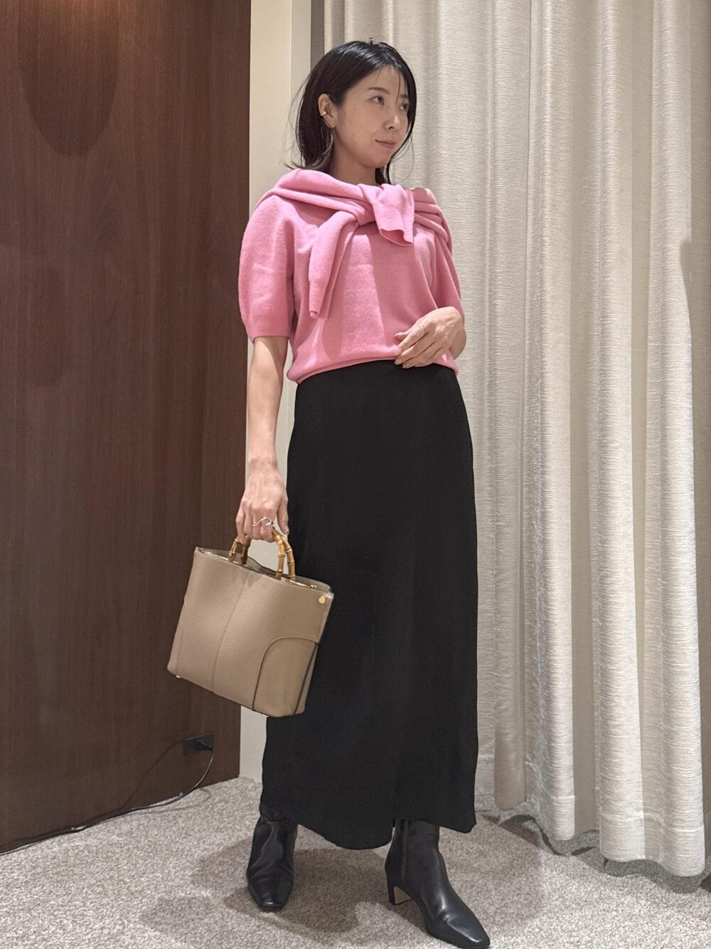 カシミヤブレンドで、ロペではロングセラーのニット。 着心地が良くシルエットも綺麗なニットとカーディガンです。 別々でももちろん、アンサンブルで着るのがオススメです。 ピンクはデニムと合わせても素敵です♡