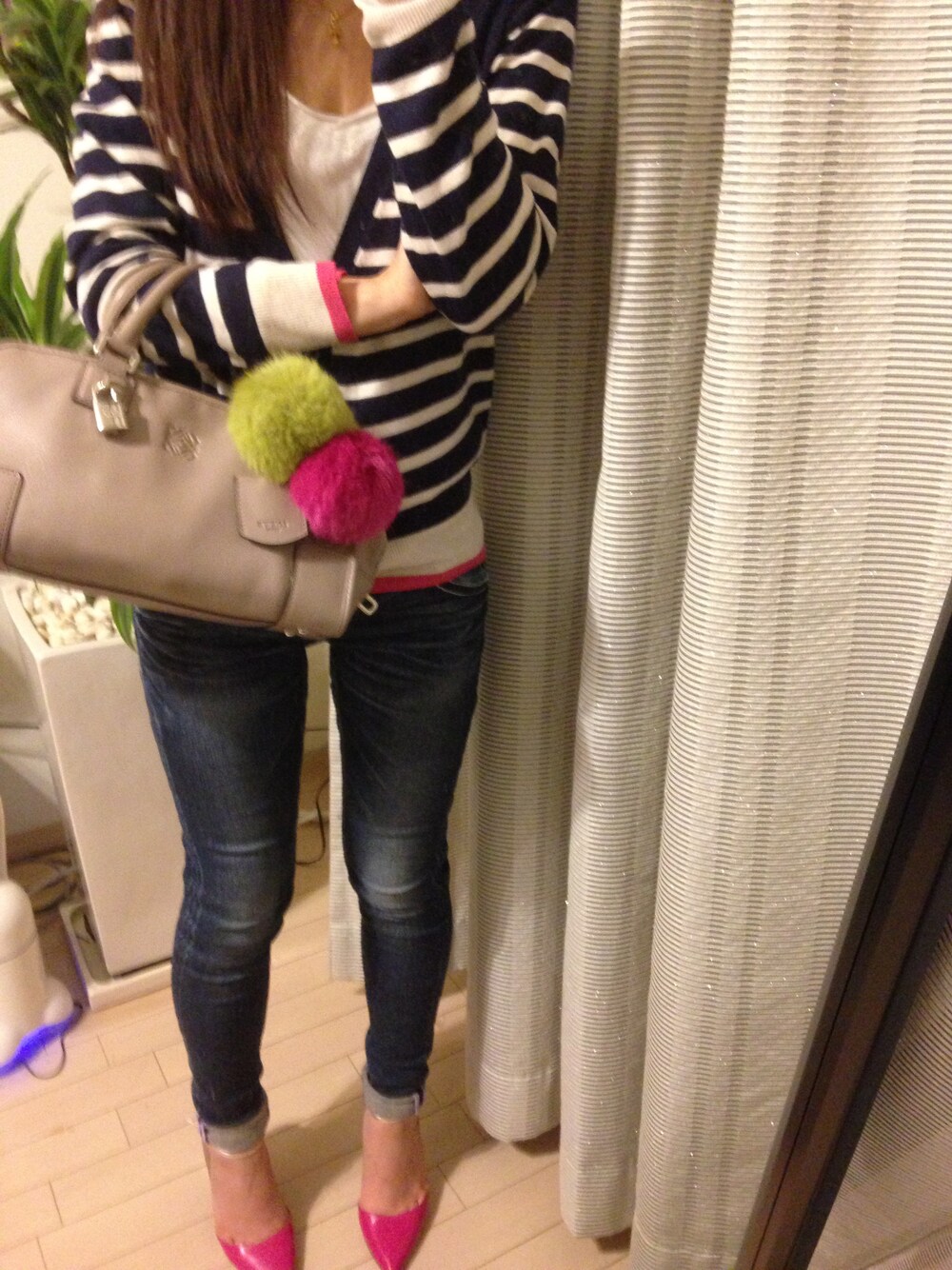 今日も寒かったけど、今日はパンプスでお出かけ♪ホッカイロ背中に貼ってます w Cardigan:GU Denim:Rodeo clown
