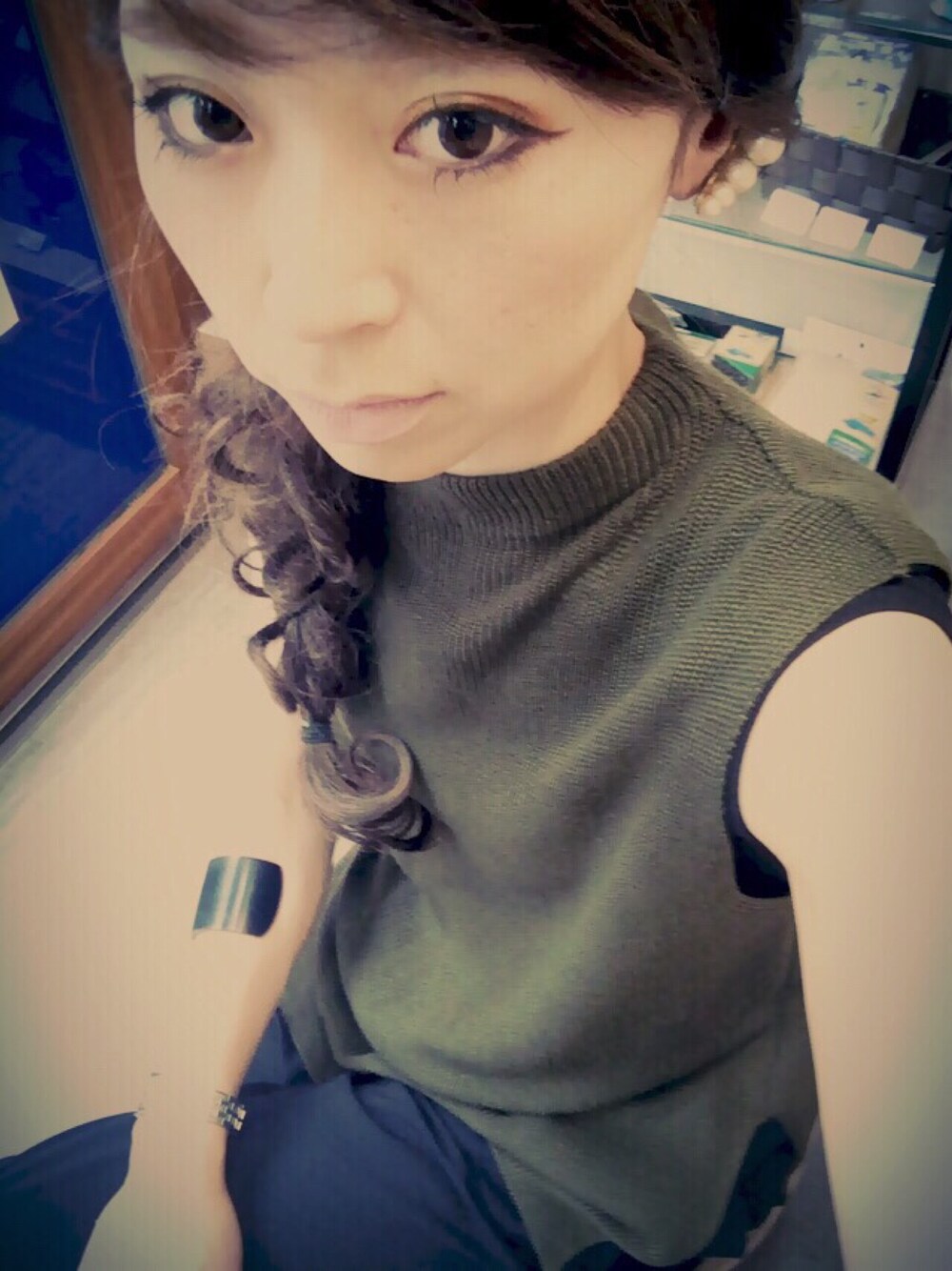 しまむらムジニットは使えるー笑 1500円だし!笑 カーキが気になる今年の秋。 カーキ似合わないと思ってたからドキドキ((´艸`*))笑 髪の毛偽物( ̄▼ ̄;)笑