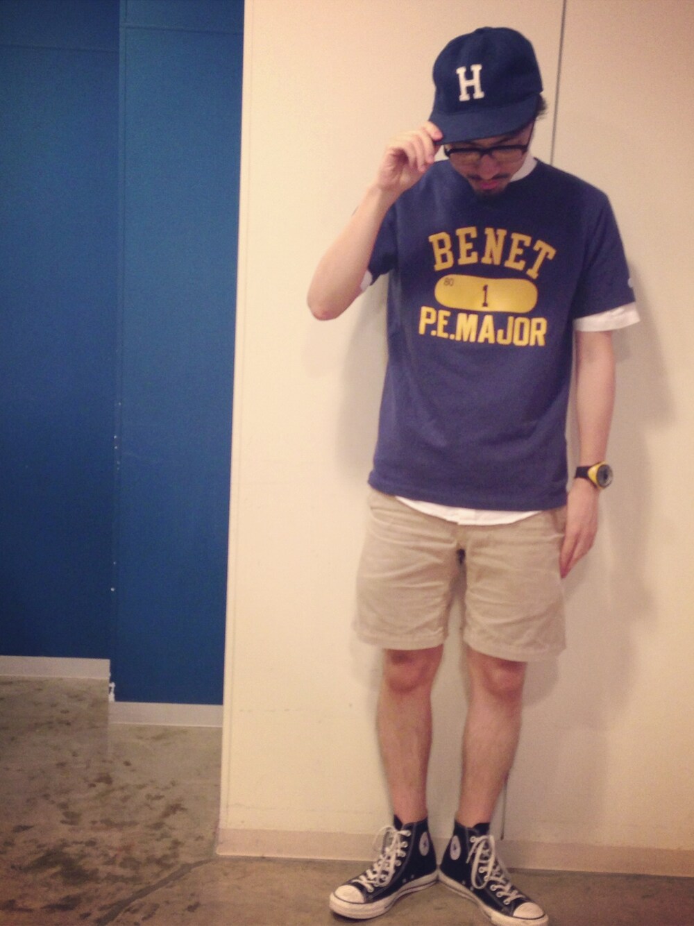 ハイカットじじい キャップ クーパーズタウン Tシャツ チャンピオン パンツ グラミチ 靴 コンバース