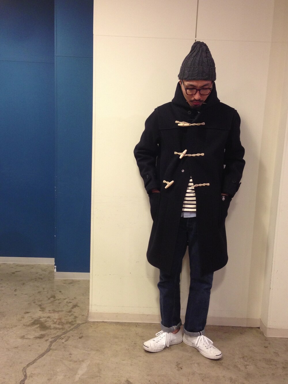ダッフルじじい 冬がやって来たばい 寒か~ ニットキャップ ハイランド2000 ダッフルコート orcival シャツ 無印良品 カットソー orcival パンツ orslow 靴 ジャックパーセル