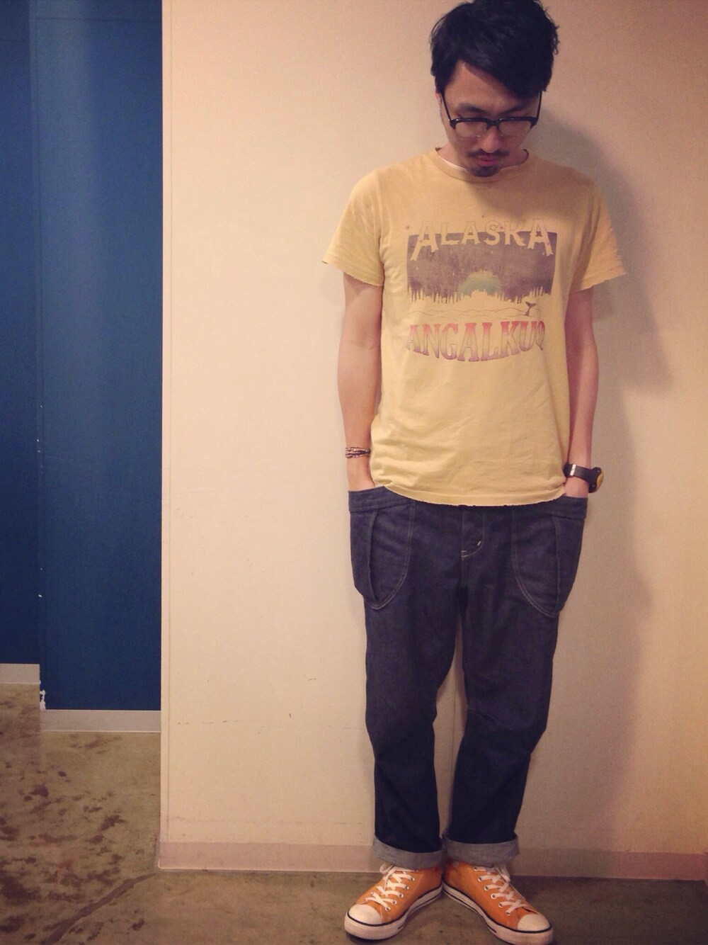 ヴィンテージジイ もはや存在がヴィンテージ 使い古しのくたびれたじじい Tシャツ レミレリーフ デニム a vontade 靴 converse