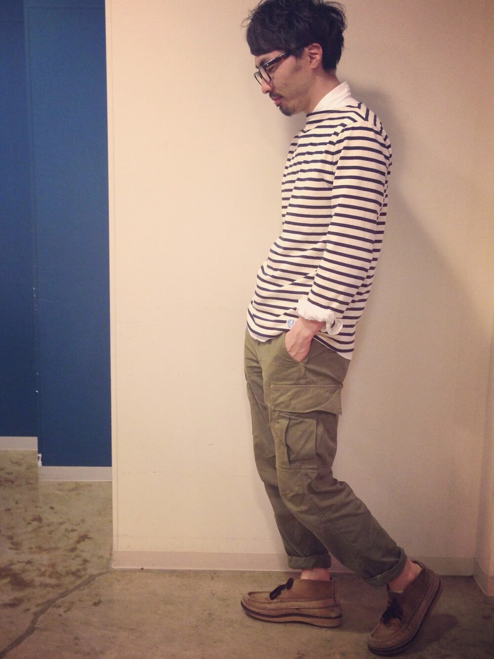 カーゴじじい カットソー orcival シャツ muji パンツ orslow 靴 ラッセルモカシン