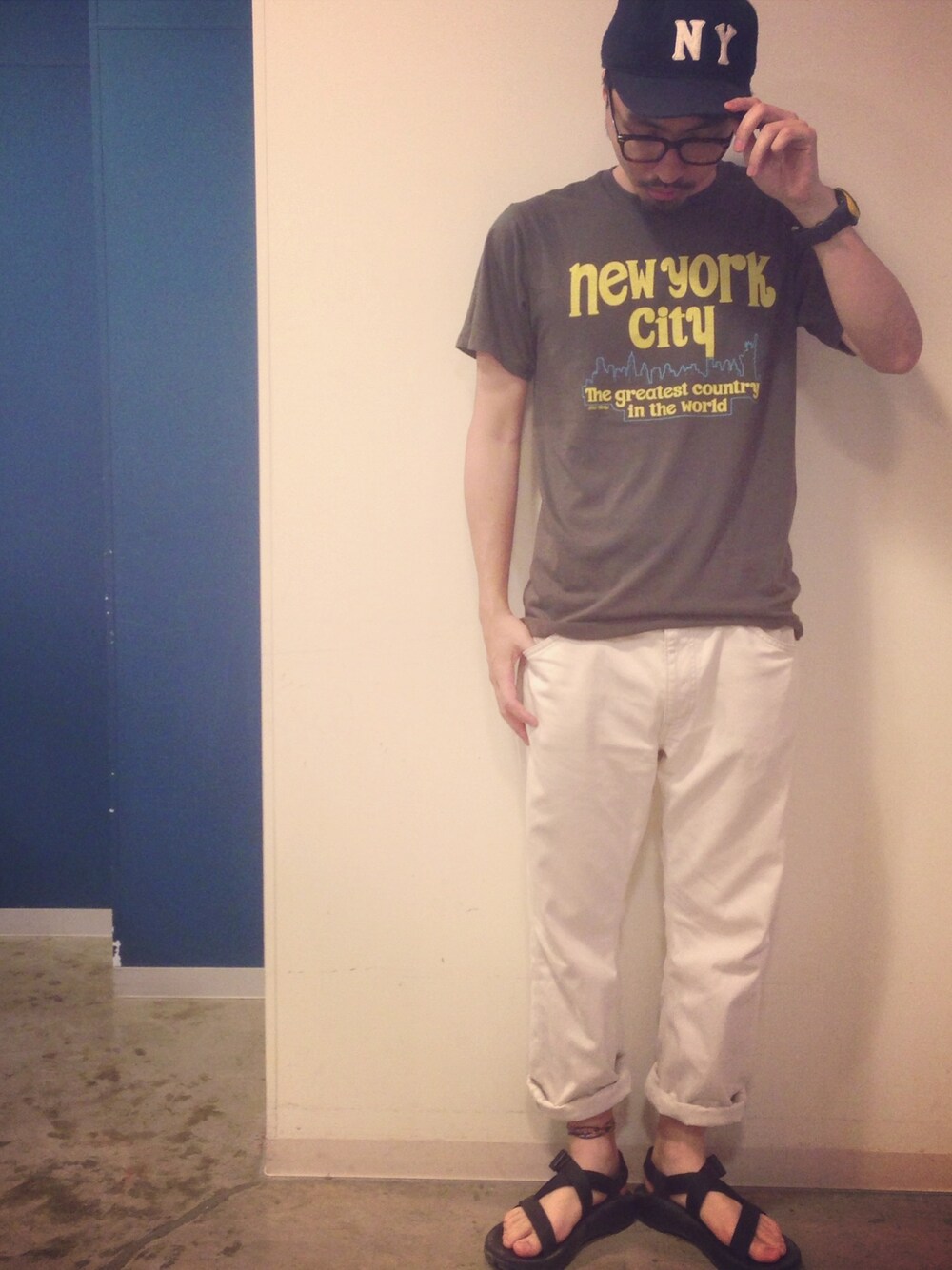 入浴じじい 今日は万葉の湯へGO キャップ エベッツフィールド Tシャツ ソリッドスレッド パンツ オアスロウ 靴 chaco