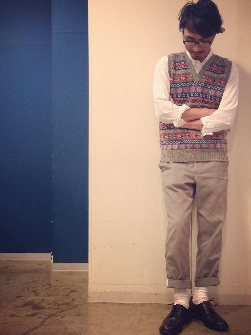 ジャミじじい ニットベスト ジャミーソンズ パンツ avontade 靴 トリッカーズ