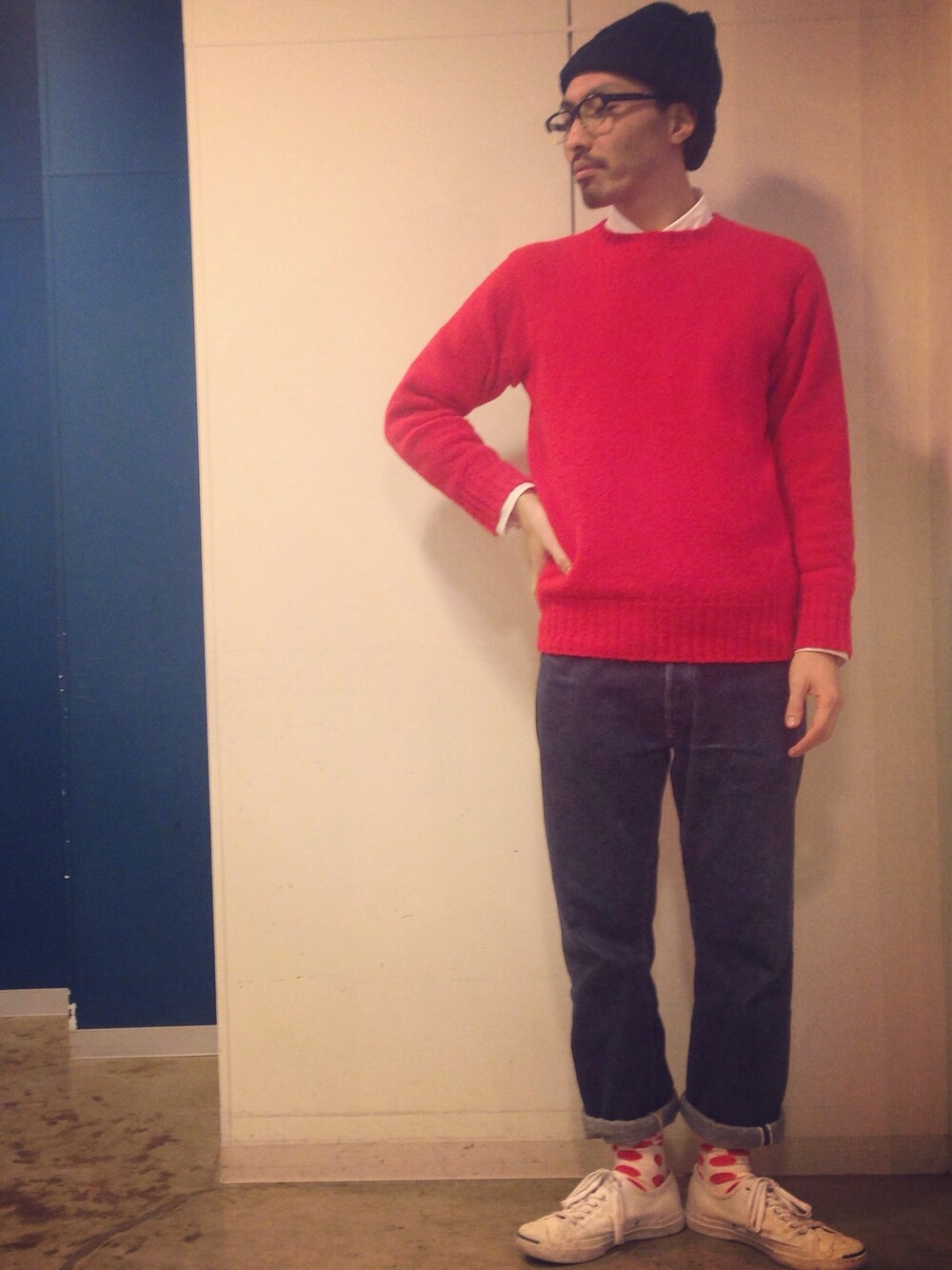 赤い彗星と呼ばれる男になりたい ニット ローレンスjスミス パンツ オアスロウ 靴 コンバース
