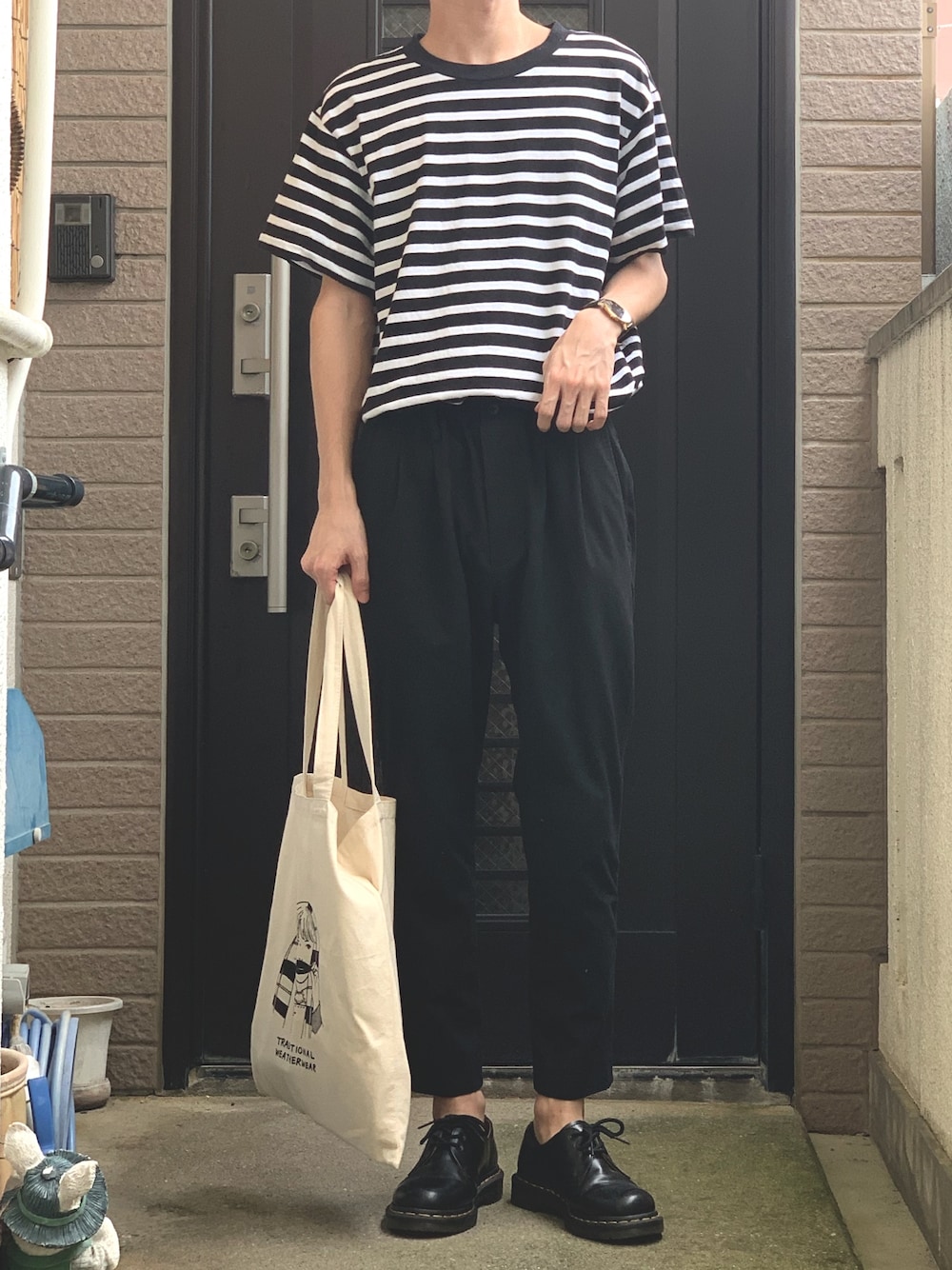ボーダーって良いですよね😎 〜コーデ紹介〜 ボーダー柄をタックインをすることで、スタイルがよくみえます! くるぶしを出して涼しさをプラス!