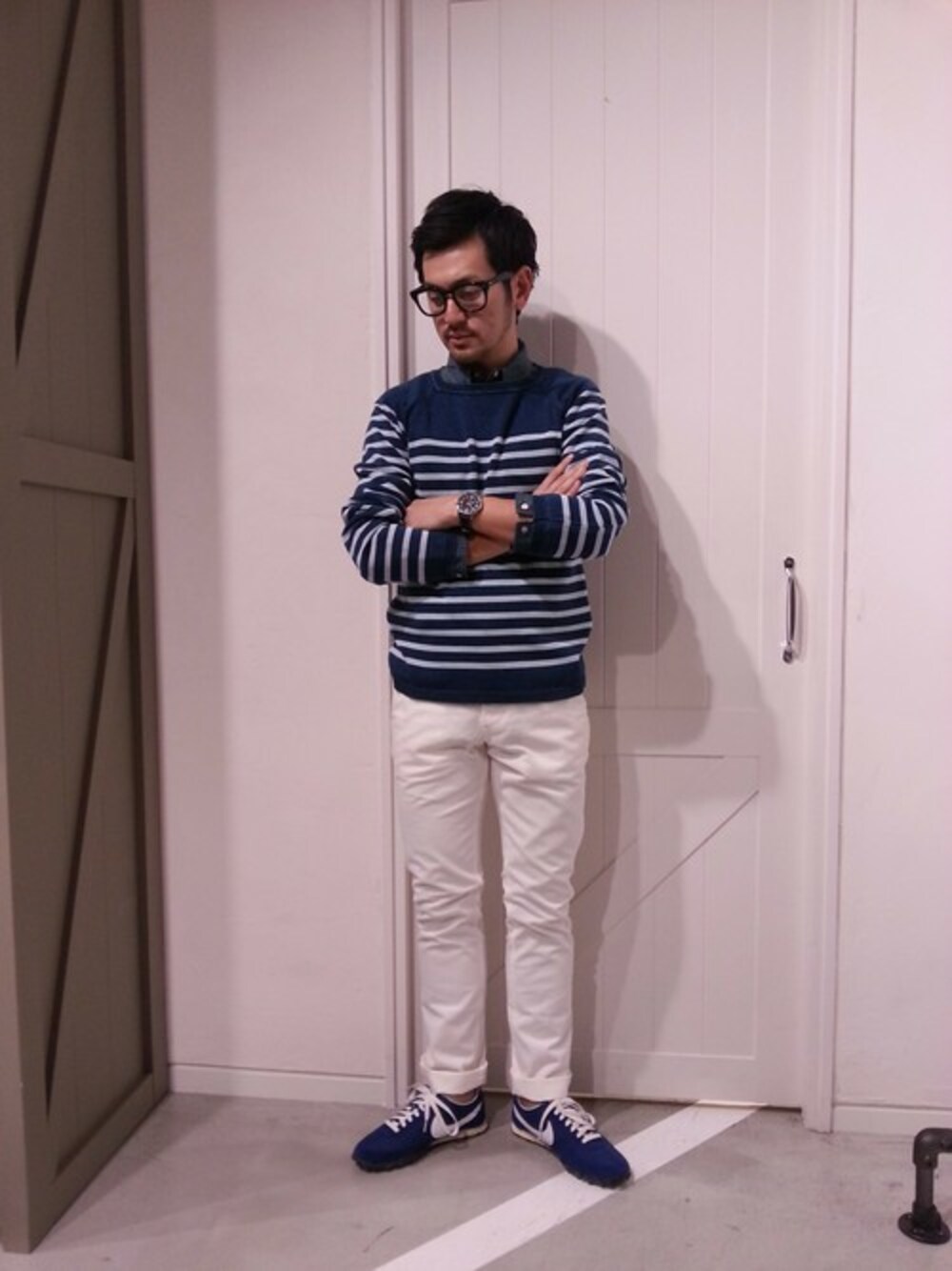 seike hirokiのニット/セーター「インディゴニット クルーネック」を使ったコーディネート