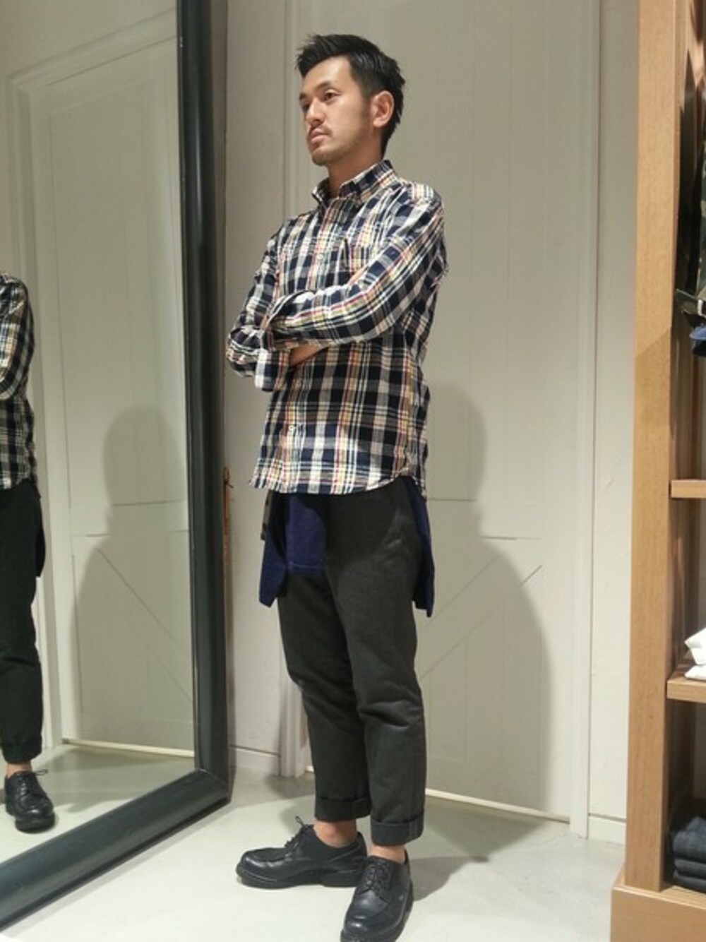 seike hirokiのシャツ/ブラウス「インディゴチェック」を使ったコーディネート