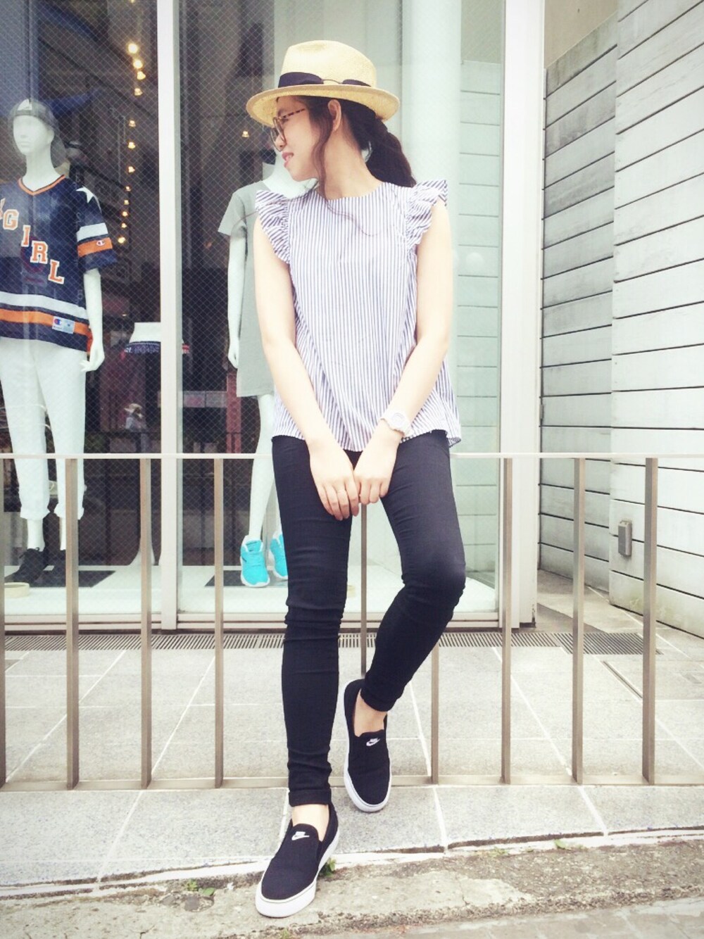 Frill shirt シリーズ終わりっ‼️ お気に入りのナイキのスリッポン💖