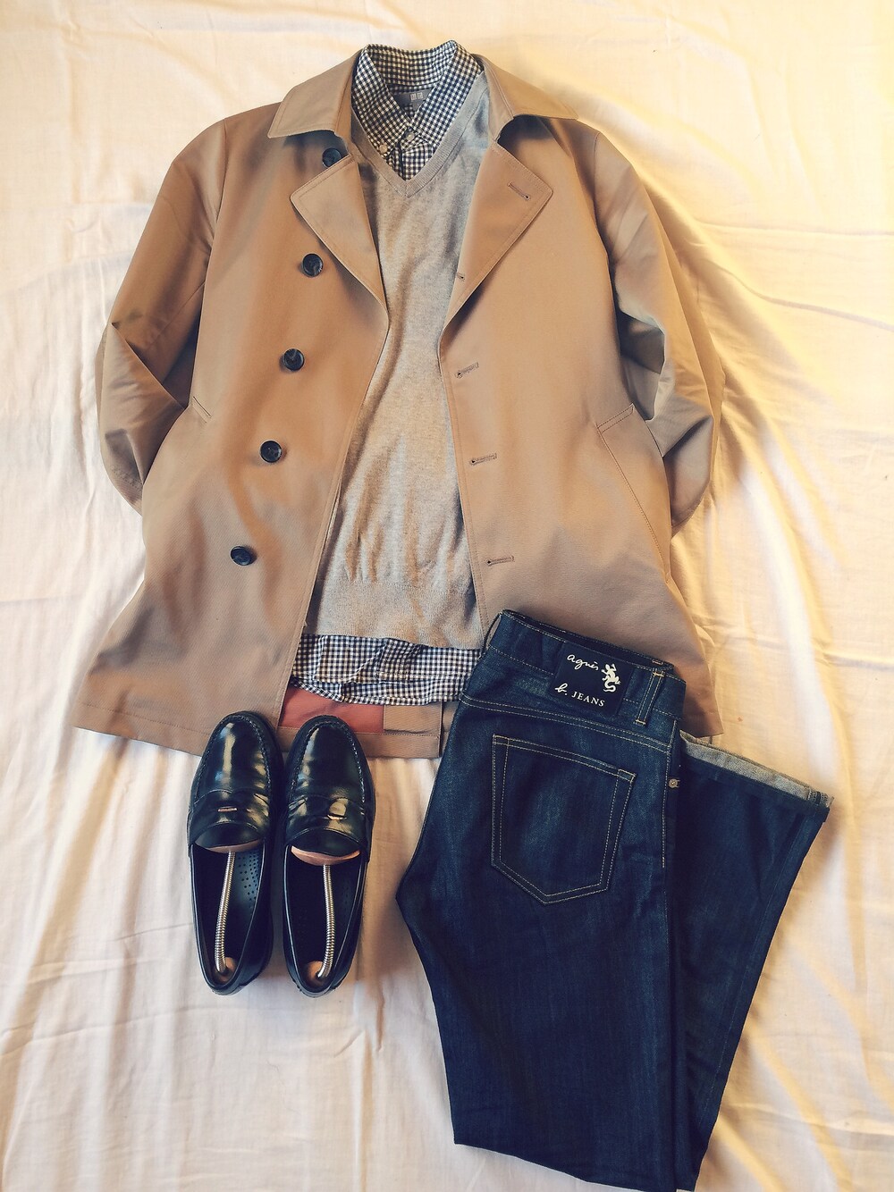 アニエスベーのジーンズに ナノユニバースのトレンチコートを 合わせていれば 王道のコーディネートに なってるはず・・・