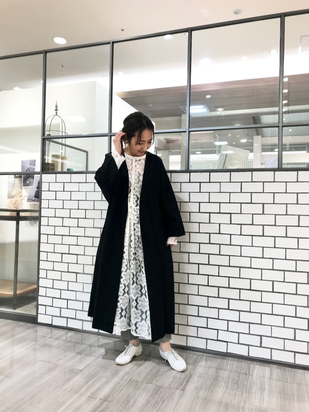 レースワンピースとリネンコートできれいめに。