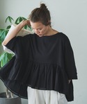 Tシャツワンピにギャザーブラウスをレイヤード。