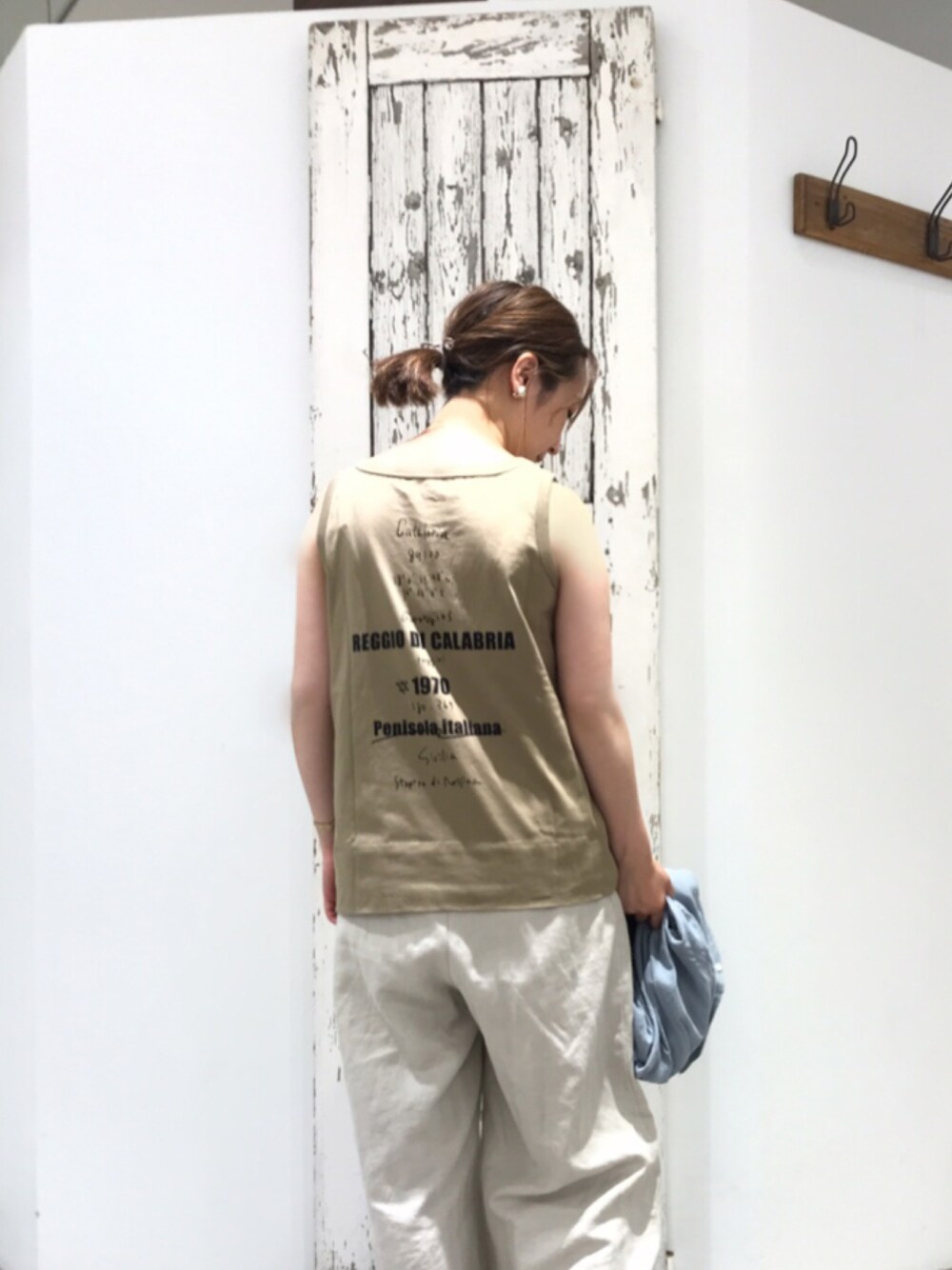 seinooo(pualcecin)のTシャツ/カットソー「擬麻加工天竺バックプリントノースリーブ/タンクトップ」を使ったコーディネート