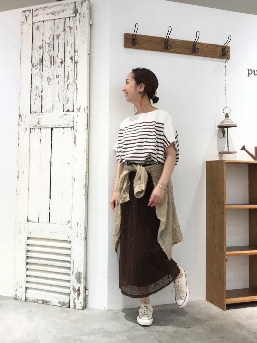カジュアルになりがちなボーダーTシャツもレーススカートと合わせれば大人っぽくまとまりますよ。