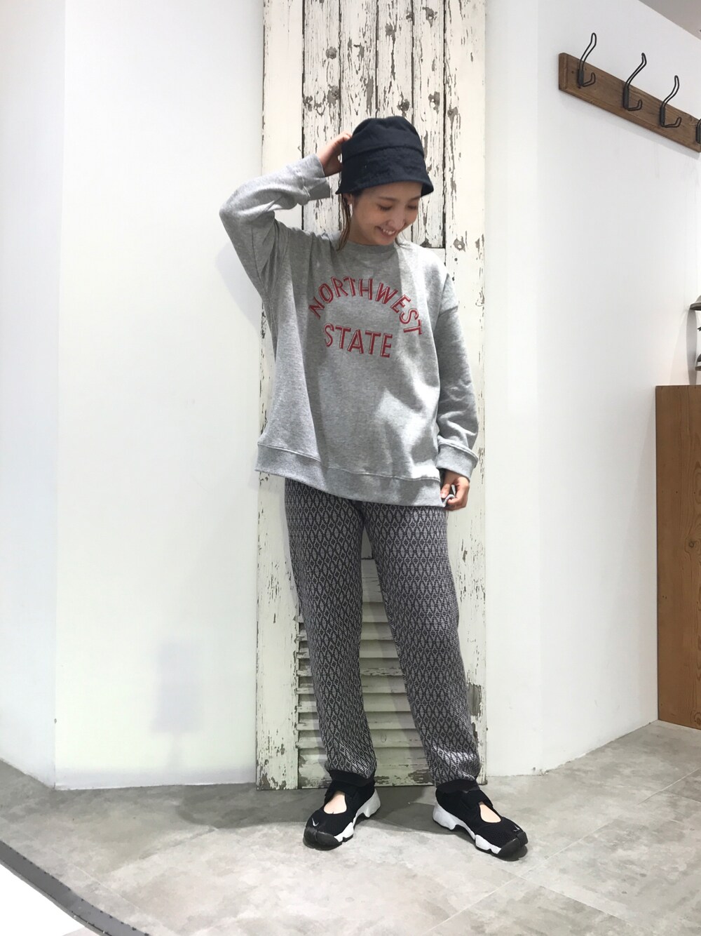 カレッジロゴスウェットの着回し! ジャガードパンツで大人カジュアル!