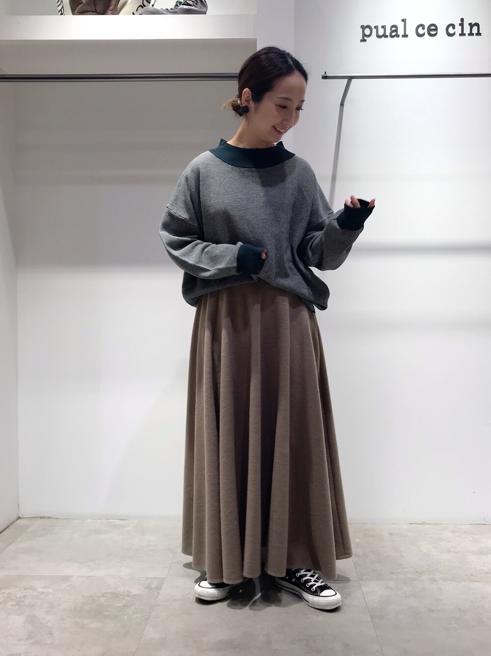 短めトップスはボリュームスカートでスッキリ