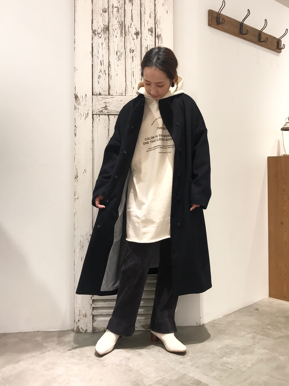 seinooo(pualcecin)のノーカラーコート「ウール混ボトルネックコート」を使ったコーディネート
