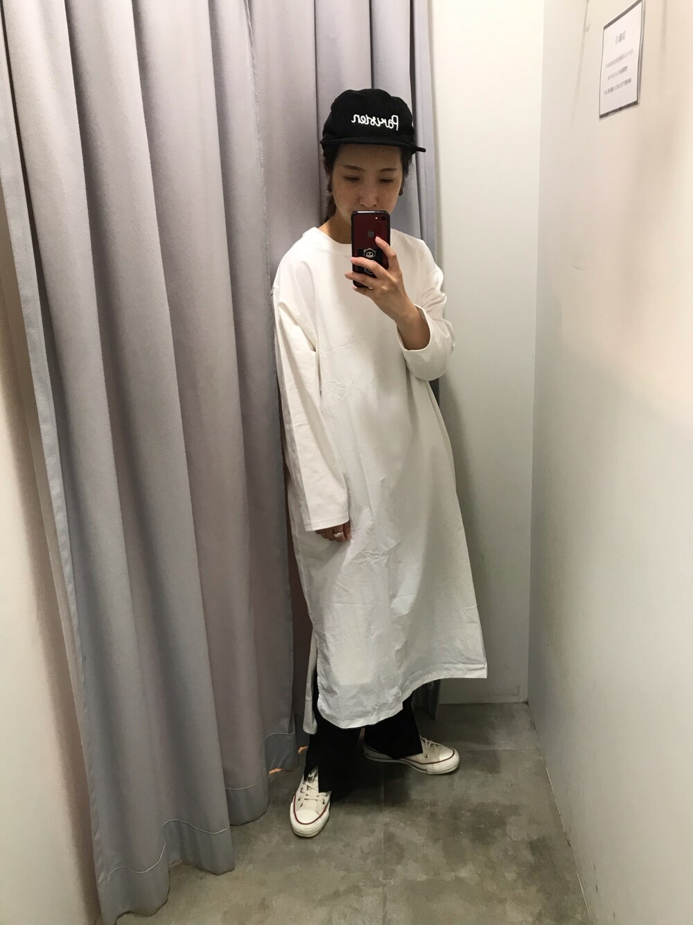 前身がナイロン、後ろがコットンの切り替えワンピ。 シンプルにモノトーンで。