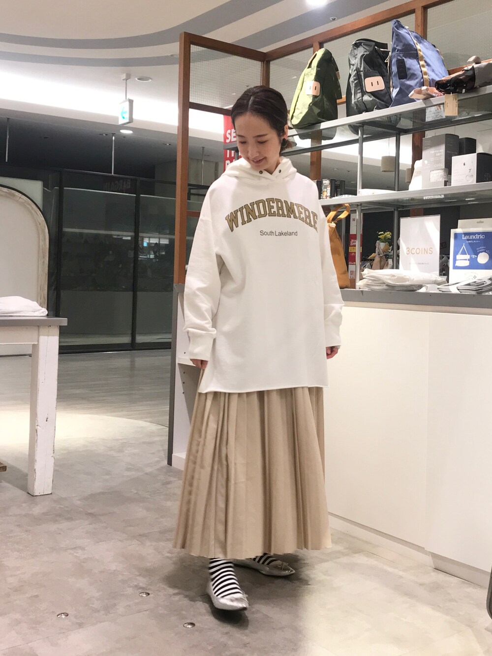 プリーツスカート×ロゴパーカー